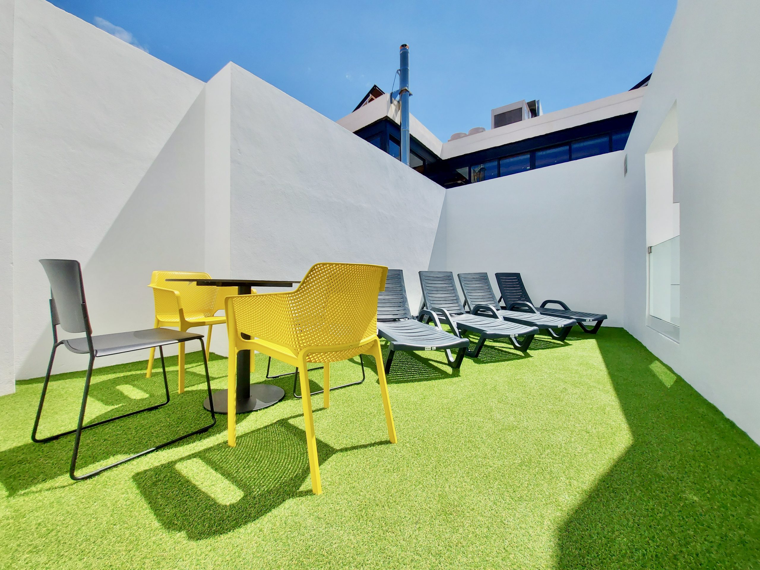 Unsere Dachterrasse und der Bar-Chill-out-Bereich des Café Caramba